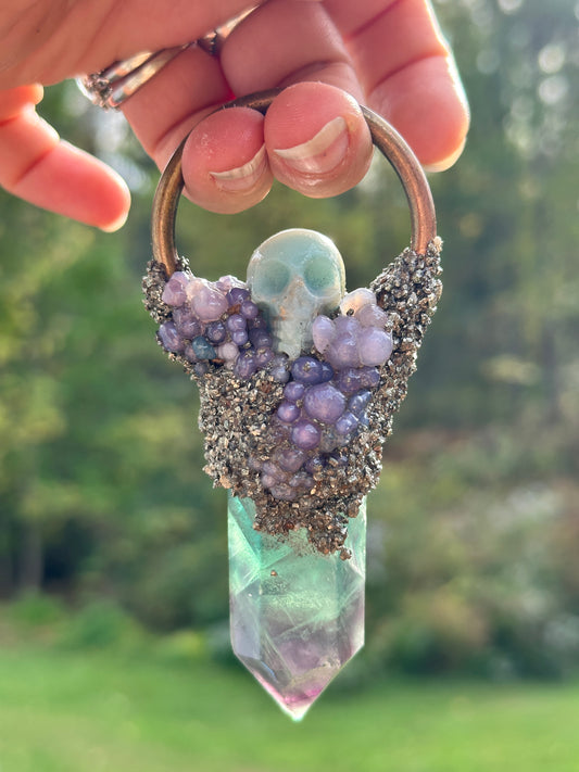 Fairy Magic - Fluorite, Grape Agate, Pyrite Pendant