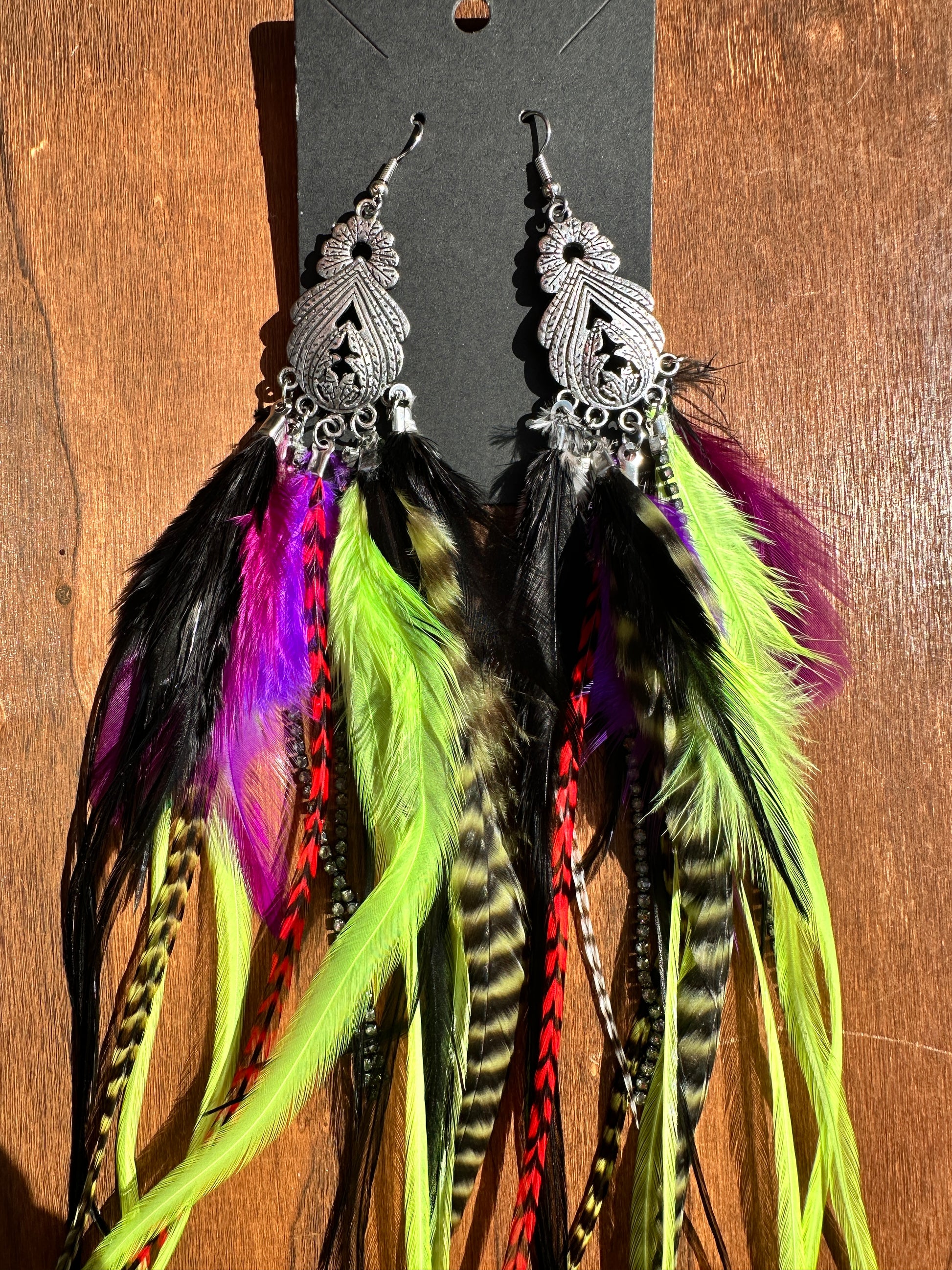 Get into the spooky spirit with our Beetle Juice inspired feather earrings! These unique earrings will add a touch of macabre elegance to any outfit. Inspired by the classic movie, these earrings are sure to turn heads and make a statement this spooky season. Made with high-quality feathers.