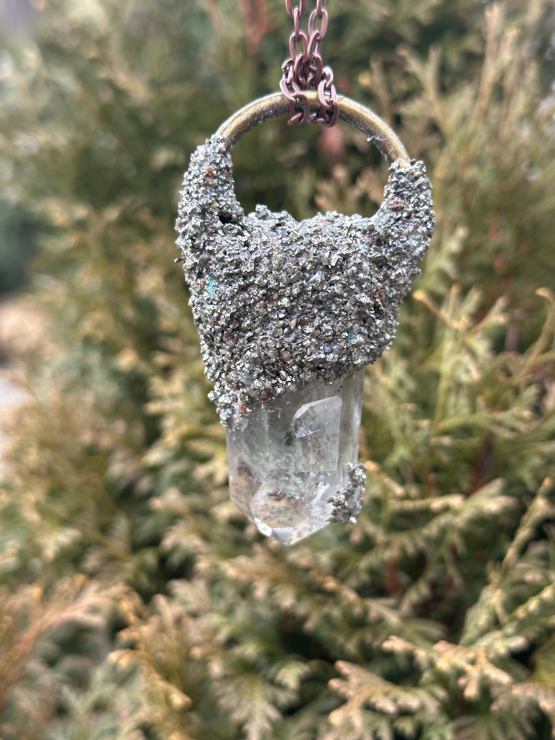Chlorite quartz with pyrite crystals blend for this pendant!